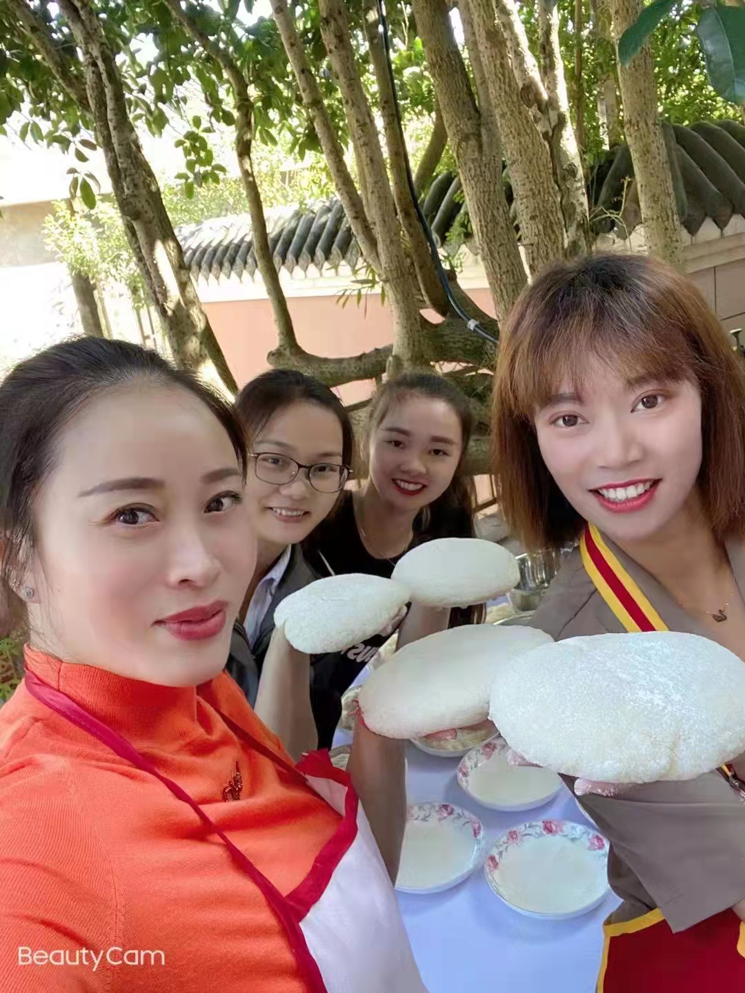 活動才剛開始,大家躍躍欲試,紛紛組隊上前體驗,幾個人一組,雙手緊握竹桿,你一下,我一下,在石缸中輪番倒騰,場面熱鬧而喜慶。打糍粑是個技術活,打的時候要快、準、穩(wěn)、狠,這樣糯米能打得均勻,大家使出全身力量,齊心協(xié)力,不一會散發(fā)著清香的糍粑就搗好了,再把搗好的糯米從石缸里舀出來后,分成盤子大的面團,拌上混合好的黃豆粉和白糖,一個個香噴噴的糍粑制作完成。蘸著白糖,品嘗著自己親手“打”出來的糍粑,個個喜笑顏開。一起品嘗著濃濃的中秋佳節(jié)的味道,勾起大家濃濃的美好回憶,讓人心生暖意。